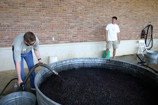 They put all of the grapes that the visitors collected in these big white boxes (you can see one in the background of that pic above) and when the box is full they dump it into this big machine they takes the grapes off of their stem and sends them down a big hose into the "grape pool".